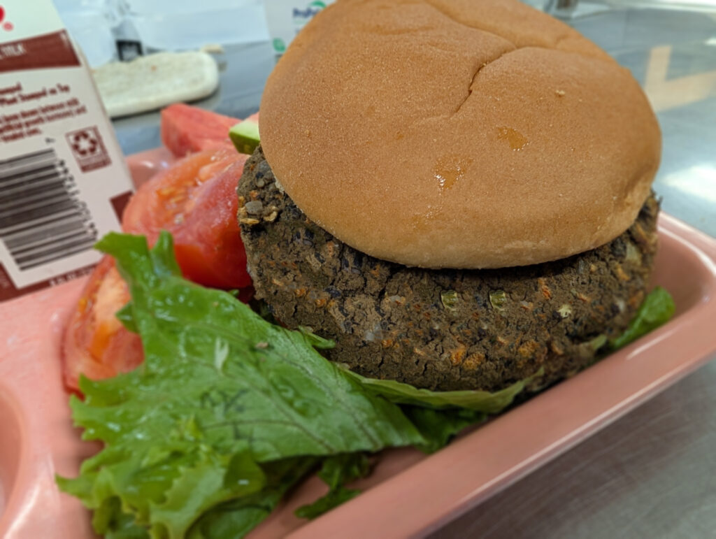 This plant-based option is made from locally-grown black beans, carrots, kale, onions, and buckwheat. Offered as a vegetarian option on menu days and as an express item, they are full of flavor, topping off the fresh veggies with curry, cumin, rosemary, and chili flakes.